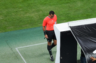 Zapopan, Jalisco, 14 de octubre de 2025. Juan Gabriel Calderón, árbitro central, durante un partido amistoso del MEXTOUR 2025, entre la Selección Nacional de México y la Selección de Ecuador, realizado en el estadio Akron. Foto: Imago7/ Juan Carlos Cubeyro.