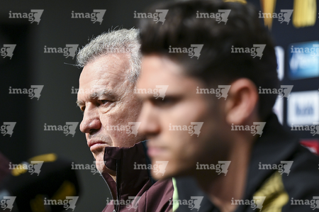 Arlington, Texas Estados Unidos de América a 17 de junio. Javier Aguirre, director técnico e Israel Reyes, durante la conferencia de prensa previa al segundo partido de la fase de grupos de la copa oro 2025, realizada en el estadio Att.