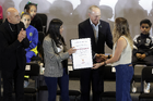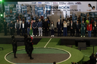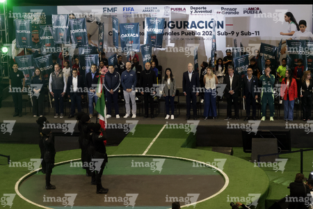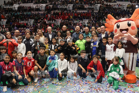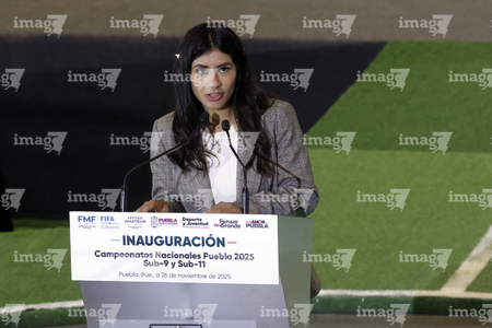 Puebla, Puebla a 26 de Noviembre de 2025. Ivar Sisniega, presidente ejecutivo de la Federación Mexicana de Futbol, junto a Gabriela Sánchez Saavedra, secretaria de Deporte y Juventud de Puebla, encabezaron la inauguración del Campeonato Nacional Puebla 2025 Sub-11 y Sub-9, en el gimnasio Miguel Hidalgo. Foto: Imago7/Diego Alducin