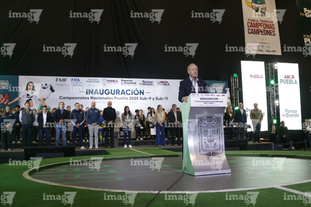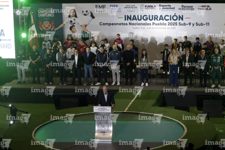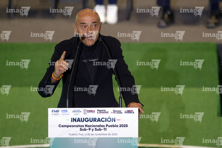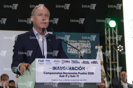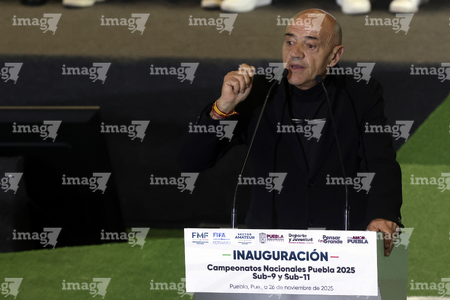 PUEBLA, Puebla a 26 de Noviembre de 2025. Ivar Sisniega, presidente ejecutivo de la Federación Mexicana de Futbol, encabezó la inauguración del Campeonato Nacional Puebla 2025 Sub-11 y Sub-9, en el gimnasio Miguel Hidalgo. Foto: Imago7/ Mireya Novo