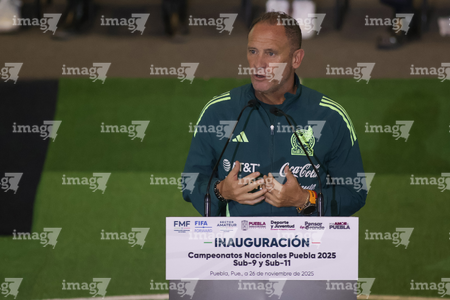 Puebla, Puebla a 26 de Noviembre de 2025. Andrés Luciano Lillini, Director de Selecciones Menores de la Federación Mexicana de Fútbol, durante la inauguración del Campeonato Nacional Puebla 2025 Sub-11 y Sub-9, en el gimnasio Miguel Hidalgo. Foto: Imago7/Diego Alducin