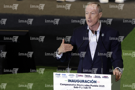 Puebla, Puebla a 26 de Noviembre de 2025. Ivar Sisniega, presidente ejecutivo de la Federación Mexicana de Futbol, encabezó la inauguración del Campeonato Nacional Puebla 2025 Sub-11 y Sub-9, en el gimnasio Miguel Hidalgo. Foto: Imago7/Diego Alducin