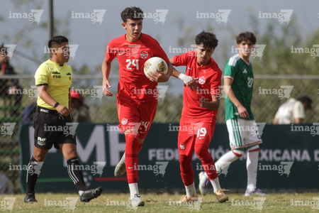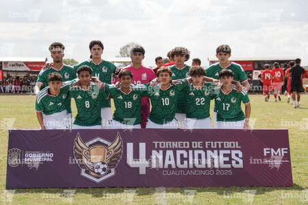 Cuautlancingo, Puebla a 28 de Noviembre de 2025 Aspectos durante el partido del torneo Cuatro Naciones, entre las selecciones Sub 16 de México y Canadá, realizado en la cancha de la unidad deportiva Cuautlancingo.