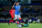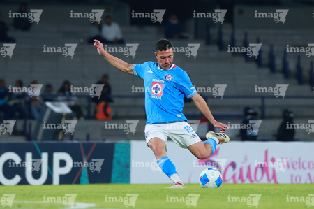 Ciudad de México, 11 de febrero de 2025. y Mateusz Bogusz, durante el partido de vuelta de la primera ronda de la Champions Cup de la CONCACAF 2025, entre la Máquina Celeste del Cruz Azul y el Real Hope FA, celebrado en el estadio Olímpico Universitario. Foto: Imago7/ Manlio Contreras