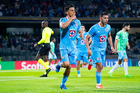 Ciudad de México, 11 de marzo de 2025. Ángel Sepúlveda en festejo de gol durante el partido de vuelta de los Octavos de Final de la Champions Cup de la CONCACAF 2025, entre la Máquina Celeste del Cruz Azul y el Seattle Sounders, celebrado en el estadio Olímpico Universitario. Foto: Imago7/ Diego Padilla