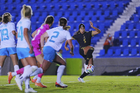 Ciudad de México, 23 de octubre de 2025. Aaliyah Farmer anota gol, durante un partido de preparación, entre la Selección Nacional de México Femenil y la Selección de Nueva Zelanda Femenil, celebrado en el estadio Ciudad de los Deportes. Foto: Imago7/ Diego Padilla