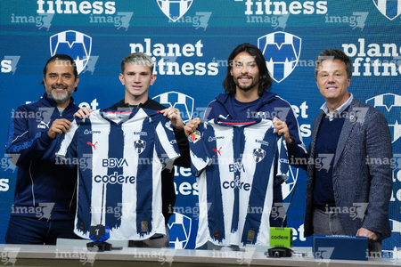 Monterrey, Nuevo León, 12 de enero de 2026. Presentación de Luca Orellano y Alonso Aceves como refuerzo de Rayados para el Torneo Clausura 2026 de la Liga BBVA MX realizado en el estadio BBVA. Foto: Imago7/ Andrea Jiménez
