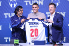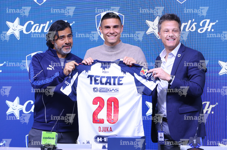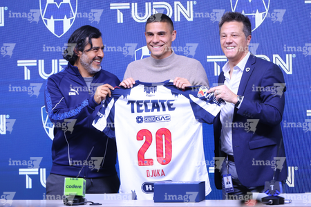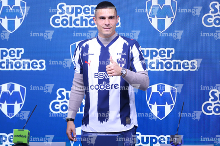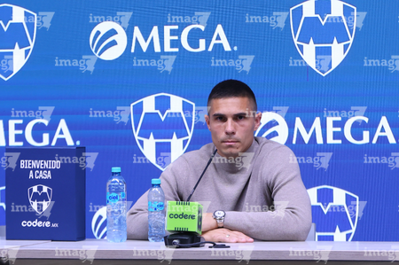 Guadalupe, Nuevo León, 6 de febrero de 2026. Uroš Đurđević, durante su presentación como refuerzo de los Rayados del Monterrey para el torneo Clausura 2026 de la Liga BBVA MX, realizado en el estadio BBVA. Foto: Imago7/ David Arzamendi
