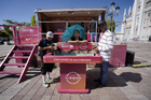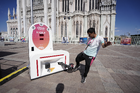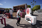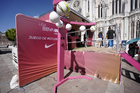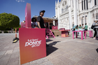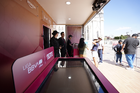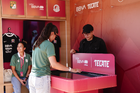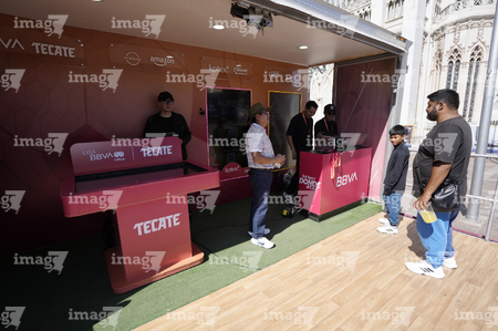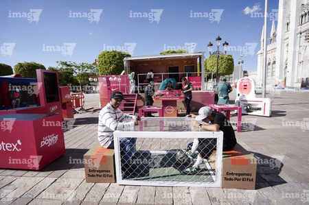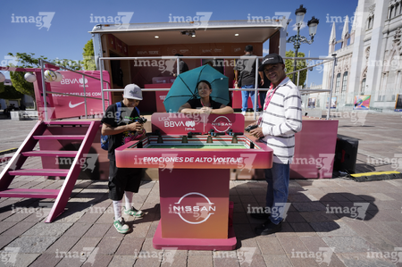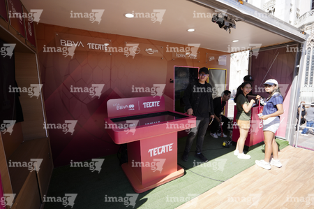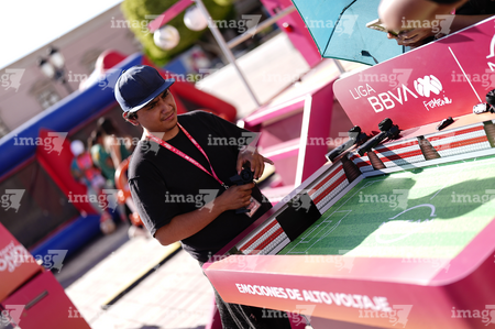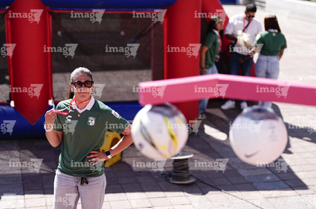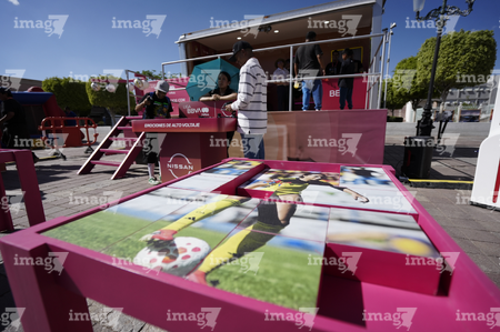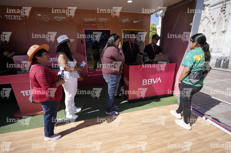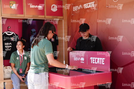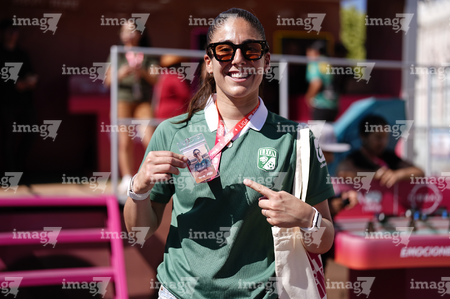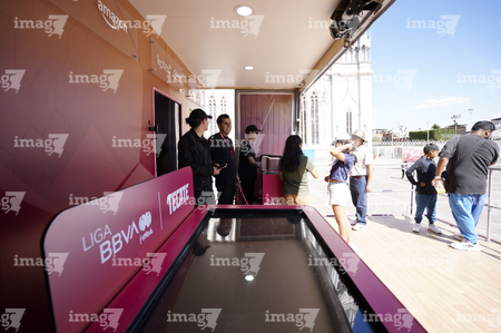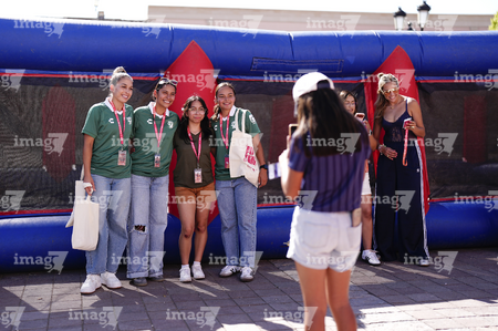 León, Guanajuato. 23 de abril de 2026. Las jugadoras del León asistieron a convivir con aficionados de la liga femenil en el camión de Futfem sobre ruedas en actividad realizada en la Plaza Expiatorio. Foto:Imago7/ Sebastian Laureano Miranda