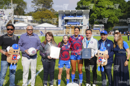 Cuernavaca, Morelos, 10 de enero de 2026. Protocolo, durante el partido correspondiente a la jornada 2 del torneo Clausura 2026 de la Liga BBVA MX Femenil, entre la Máquina Celeste del Cruz Azul y las Chivas Rayadas del Guadalajara, realizado en el estadio Centenario. Foto: Imago7/ Manlio Contreras