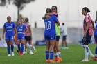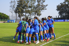 Cuernavaca, Morelos, 10 de enero de 2026. Jugadoras de Cruz Azul Femenil, durante el partido correspondiente a la jornada 2 del torneo Clausura 2026 de la Liga BBVA MX Femenil, entre la Máquina Celeste del Cruz Azul y las Chivas Rayadas del Guadalajara, realizado en el estadio Centenario. Foto: Imago7/ Manlio Contreras