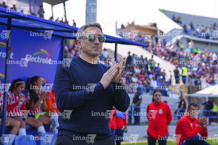 Cuernavaca, Morelos, 10 de enero de 2026. Diego Testas, Director Técnico, durante el partido correspondiente a la jornada 2 del torneo Clausura 2026 de la Liga BBVA MX Femenil, entre la Máquina Celeste del Cruz Azul y las Chivas Rayadas del Guadalajara, realizado en el estadio Centenario. Foto: Imago7/ Manlio Contreras