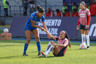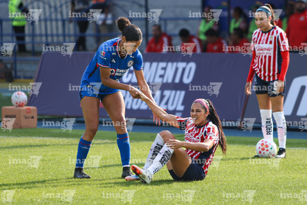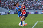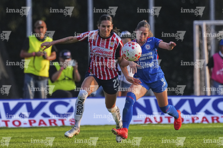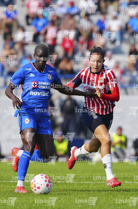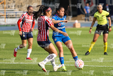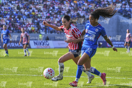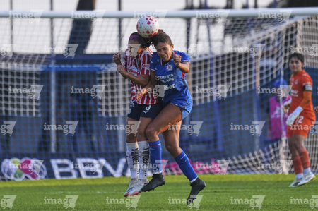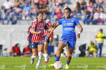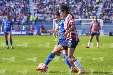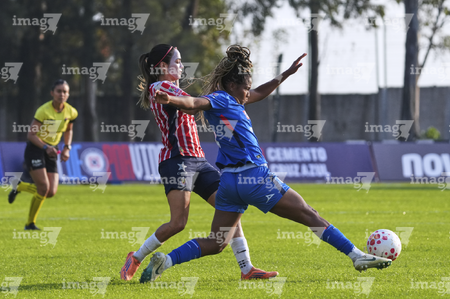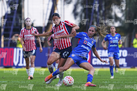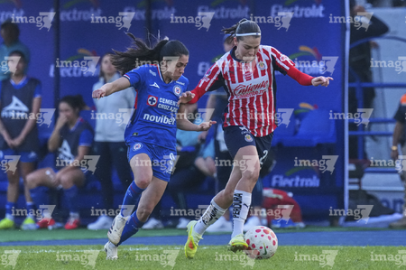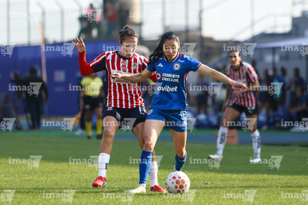 Cuernavaca, Morelos, 10 de enero de 2026. Casandra Montero y Aerial Chavarin, durante el partido correspondiente a la jornada 2 del torneo Clausura 2026 de la Liga BBVA MX Femenil, entre la Máquina Celeste del Cruz Azul y las Chivas Rayadas del Guadalajara, realizado en el estadio Centenario. Foto: Imago7/ Daniel Sydney