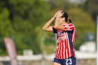 Cuernavaca, Morelos, 10 de enero de 2026. Jasmine Casarez en lamento, durante el partido correspondiente a la jornada 2 del torneo Clausura 2026 de la Liga BBVA MX Femenil, entre la Máquina Celeste del Cruz Azul y las Chivas Rayadas del Guadalajara, realizado en el estadio Centenario. Foto: Imago7/ Manlio Contreras