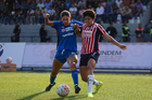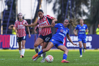 Cuernavaca, Morelos, 10 de enero de 2026. Yamile Franco y Ana Lucía Martínez, durante el partido correspondiente a la jornada 2 del torneo Clausura 2026 de la Liga BBVA MX Femenil, entre la Máquina Celeste del Cruz Azul y las Chivas Rayadas del Guadalajara, realizado en el estadio Centenario. Foto: Imago7/ Daniel Sydney