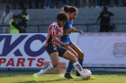 Cuernavaca, Morelos, 10 de enero de 2026. Araceli Torres y Alicia Cervantes, durante el partido correspondiente a la jornada 2 del torneo Clausura 2026 de la Liga BBVA MX Femenil, entre la Máquina Celeste del Cruz Azul y las Chivas Rayadas del Guadalajara, realizado en el estadio Centenario. Foto: Imago7/ Manlio Contreras