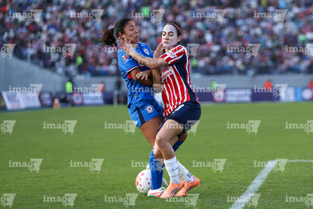 Cuernavaca, Morelos, 10 de enero de 2026. Aerial Chavarin y Casandra Montero, durante el partido correspondiente a la jornada 2 del torneo Clausura 2026 de la Liga BBVA MX Femenil, entre la Máquina Celeste del Cruz Azul y las Chivas Rayadas del Guadalajara, realizado en el estadio Centenario. Foto: Imago7/ Daniel Sydney