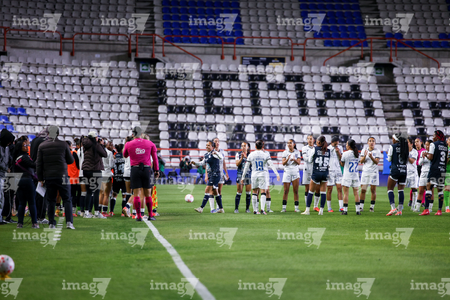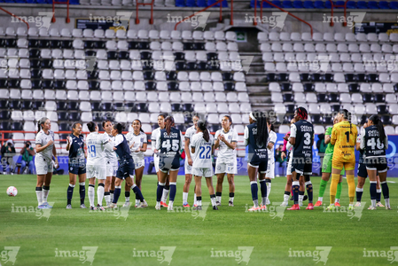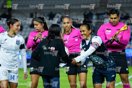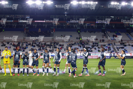 Pachuca, Hidalgo a 11 de enero de 2026. Protocolo, durante el partido correspondiente a la jornada 2 del torneo Clausura 2026 de la Liga BBVA MX Femenil, entre las Tuzas del Pachuca y el Club Querétaro, realizado en el estadio Hidalgo. Foto: Imago7/ Elizabeth Hernández