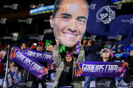 Pachuca, Hidalgo, 11 de enero de 2026. Afición en homenaje a Mónica Ocampo, durante el partido correspondiente a la jornada 2 del torneo Clausura 2026 de la Liga BBVA MX Femenil, entre las Tuzas del Pachuca y el Club Querétaro, realizado en el estadio Hidalgo. Foto: Imago7/ Jacqueline Pedraza