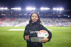 Pachuca, Hidalgo a 11 de enero de 2026. Embajadora, durante el partido correspondiente a la jornada 2 del torneo Clausura 2026 de la Liga BBVA MX Femenil, entre las Tuzas del Pachuca y el Club Querétaro, realizado en el estadio Hidalgo. Foto: Imago7/ Elizabeth Hernández