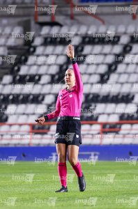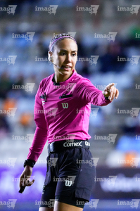 Pachuca, Hidalgo, 11 de enero de 2026. María Fernanda Márquez, árbitra central, durante el partido correspondiente a la jornada 2 del torneo Clausura 2026 de la Liga BBVA MX Femenil, entre las Tuzas del Pachuca y el Club Querétaro, realizado en el estadio Hidalgo. Foto: Imago7/ Jacqueline Pedraza