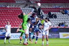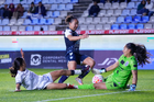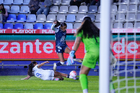 Pachuca, Hidalgo a 11 de enero de 2026. Claudia Lozoya recibe gol, durante el partido correspondiente a la jornada 2 del torneo Clausura 2026 de la Liga BBVA MX Femenil, entre las Tuzas del Pachuca y el Club Querétaro, realizado en el estadio Hidalgo. Foto: Imago7/ Elizabeth Hernández