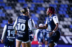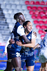 Pachuca, Hidalgo, 11 de enero de 2026. Nina Nicosia y Chinwendu Ihezuoen festejo de gol, durante el partido correspondiente a la jornada 2 del torneo Clausura 2026 de la Liga BBVA MX Femenil, entre las Tuzas del Pachuca y el Club Querétaro, realizado en el estadio Hidalgo. Foto: Imago7/ Jacqueline Pedraza