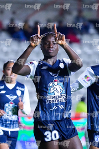 Pachuca, Hidalgo, 11 de enero de 2026. Chinwendu Ihezuo en festejo de gol, durante el partido correspondiente a la jornada 2 del torneo Clausura 2026 de la Liga BBVA MX Femenil, entre las Tuzas del Pachuca y el Club Querétaro, realizado en el estadio Hidalgo. Foto: Imago7/ Jacqueline Pedraza