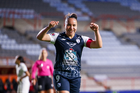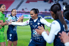 Pachuca, Hidalgo, 11 de enero de 2026. Nina Nicosia en festejo de gol, durante el partido correspondiente a la jornada 2 del torneo Clausura 2026 de la Liga BBVA MX Femenil, entre las Tuzas del Pachuca y el Club Querétaro, realizado en el estadio Hidalgo. Foto: Imago7/ Jacqueline Pedraza