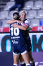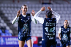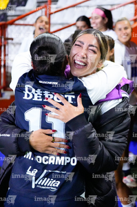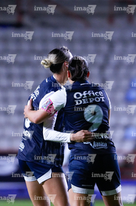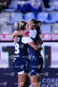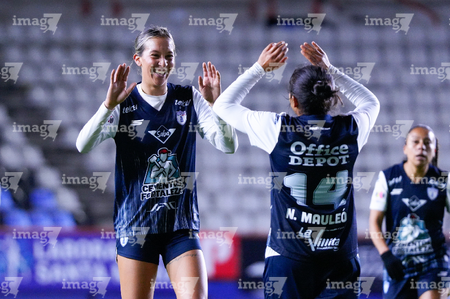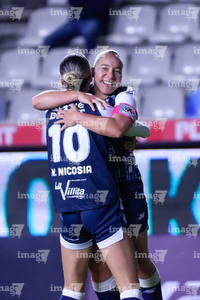 Pachuca, Hidalgo a 11 de enero de 2026. Natalia Mauleon y Nina Nicosia en festejo de gol, durante el partido correspondiente a la jornada 2 del torneo Clausura 2026 de la Liga BBVA MX Femenil, entre las Tuzas del Pachuca y el Club Querétaro, realizado en el estadio Hidalgo. Foto: Imago7/ Elizabeth Hernández