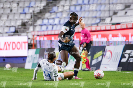 Pachuca, Hidalgo, 11 de enero de 2026. Claudia Lozoya y Chinwendu Ihezuo, durante el partido correspondiente a la jornada 2 del torneo Clausura 2026 de la Liga BBVA MX Femenil, entre las Tuzas del Pachuca y el Club Querétaro, realizado en el estadio Hidalgo. Foto: Imago7/ Jacqueline Pedraza
