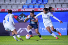 Pachuca, Hidalgo, 11 de enero de 2026. Nina Nicosia, durante el partido correspondiente a la jornada 2 del torneo Clausura 2026 de la Liga BBVA MX Femenil, entre las Tuzas del Pachuca y el Club Querétaro, realizado en el estadio Hidalgo. Foto: Imago7/ Jacqueline Pedraza
