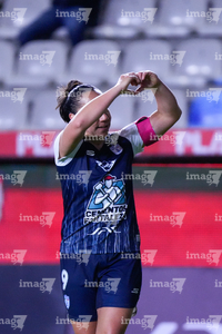 Pachuca, Hidalgo a 11 de enero de 2026. Esthefanny Barreras en festejo, durante el partido correspondiente a la jornada 2 del torneo Clausura 2026 de la Liga BBVA MX Femenil, entre las Tuzas del Pachuca y el Club Querétaro, realizado en el estadio Hidalgo. Foto: Imago7/ Elizabeth Hernández