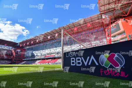Toluca, Estado de México, 12 de enero de 2026. Panorámica del estadio, durante el partido correspondiente a la jornada 2 del torneo Clausura 2026 de la Liga BBVA MX Femenil, entre las Diablas Rojas del Toluca y las Rojinegras del Atlas, realizado en el estadio Nemesio Diez. Foto: Imago7/Daniel Arriaga
