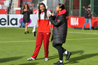 Toluca, Estado de México, 12 de enero de 2026. Embajadora, durante el partido correspondiente a la jornada 2 del torneo Clausura 2026 de la Liga BBVA MX Femenil, entre las Diablas Rojas del Toluca y las Rojinegras del Atlas, realizado en el estadio Nemesio Diez. Foto: Imago7/Jesús Esquivel