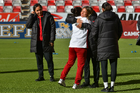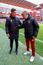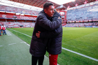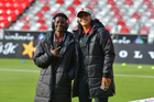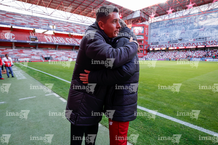 Toluca, Estado de México, 12 de enero de 2026. Jair Chávez, auxiliar técnico y Patrice Lair, director técnico ¿, durante el partido correspondiente a la jornada 2 del torneo Clausura 2026 de la Liga BBVA MX Femenil, entre las Diablas Rojas del Toluca y las Rojinegras del Atlas, realizado en el estadio Nemesio Diez. Foto: Imago7/Daniel Arriaga