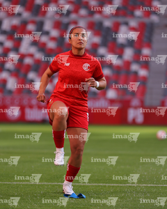 Toluca, Estado de México, 12 de enero de 2026. Cinthya Peraza, durante el partido correspondiente a la jornada 2 del torneo Clausura 2026 de la Liga BBVA MX Femenil, entre las Diablas Rojas del Toluca y las Rojinegras del Atlas, realizado en el estadio Nemesio Diez. Foto: Imago7/ Arturo Hernández