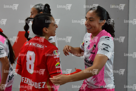 Toluca, Estado de México, 12 de enero de 2026. Liliana Fernandez y Laila Saravia, durante el partido correspondiente a la jornada 2 del torneo Clausura 2026 de la Liga BBVA MX Femenil, entre las Diablas Rojas del Toluca y las Rojinegras del Atlas, realizado en el estadio Nemesio Diez. Foto: Imago7/ Arturo Hernández