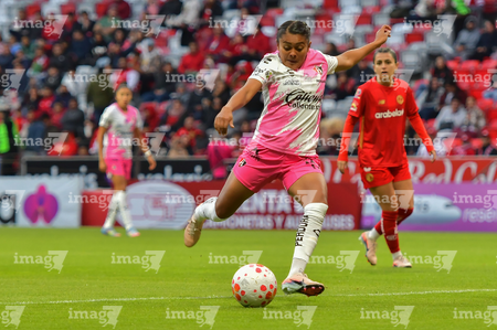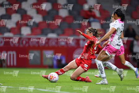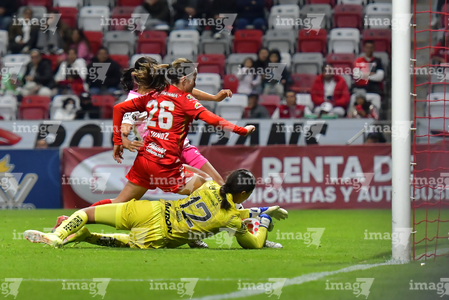 Toluca, Estado de México, 12 de enero de 2026. Portigoles, durante el partido correspondiente a la jornada 2 del torneo Clausura 2026 de la Liga BBVA MX Femenil, entre las Diablas Rojas del Toluca y las Rojinegras del Atlas, realizado en el estadio Nemesio Diez. Foto: Imago7/ Arturo Hernández