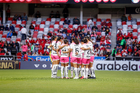 Toluca, Estado de México, 12 de enero de 2026. Jugadoras del Atlas femenil, durante el partido correspondiente a la jornada 2 del torneo Clausura 2026 de la Liga BBVA MX Femenil, entre las Diablas Rojas del Toluca y las Rojinegras del Atlas, realizado en el estadio Nemesio Diez. Foto: Imago7/Daniel Arriaga