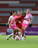 Toluca, Estado de México, 12 de enero de 2026. Liliana Fernandez y Renata Huerta, durante el partido correspondiente a la jornada 2 del torneo Clausura 2026 de la Liga BBVA MX Femenil, entre las Diablas Rojas del Toluca y las Rojinegras del Atlas, realizado en el estadio Nemesio Diez. Foto: Imago7/Daniel Arriaga