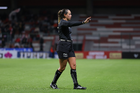 Toluca, Estado de México, 12 de enero de 2026. Ximena Márquez Ruíz, árbitro central, durante el partido correspondiente a la jornada 2 del torneo Clausura 2026 de la Liga BBVA MX Femenil, entre las Diablas Rojas del Toluca y las Rojinegras del Atlas, realizado en el estadio Nemesio Diez. Foto: Imago7/Jesús Esquivel