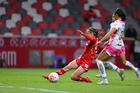 Toluca, Estado de México, 12 de enero de 2026. Eugenie Le Sommer en lamento, durante el partido correspondiente a la jornada 2 del torneo Clausura 2026 de la Liga BBVA MX Femenil, entre las Diablas Rojas del Toluca y las Rojinegras del Atlas, realizado en el estadio Nemesio Diez. Foto: Imago7/Jesús Esquivel