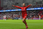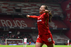 Toluca, Estado de México, 12 de enero de 2026. Valeria Martínez en festejo, durante el partido correspondiente a la jornada 2 del torneo Clausura 2026 de la Liga BBVA MX Femenil, entre las Diablas Rojas del Toluca y las Rojinegras del Atlas, realizado en el estadio Nemesio Diez. Foto: Imago7/Daniel Arriaga