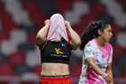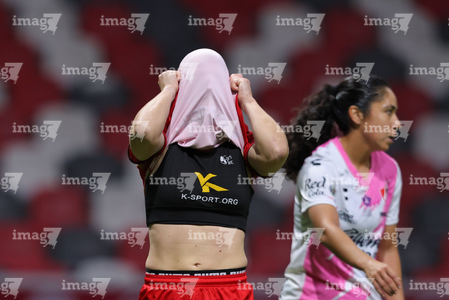 Toluca, Estado de México, 12 de enero de 2026. Faustine Robert en lamento, durante el partido correspondiente a la jornada 2 del torneo Clausura 2026 de la Liga BBVA MX Femenil, entre las Diablas Rojas del Toluca y las Rojinegras del Atlas, realizado en el estadio Nemesio Diez. Foto: Imago7/Jesús Esquivel