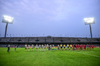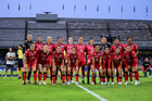 Ciudad de México, 16 de enero de 2026. Protocolo, durante el partido correspondiente a la jornada 3 del torneo Clausura 2026 de la Liga BBVA MX Femenil, entre las Pumas de la UNAM y las Cañoneras del Mazatlán FC, realizado en el estadio Olímpico Universitario. Foto: Imago7/ Alexis Chavez