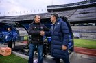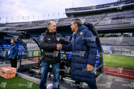 Ciudad de México, 16 de enero de 2026. Nicolás Morales, Director Técnico y Roberto Medina, Director Técnico, durante el partido correspondiente a la jornada 3 del torneo Clausura 2026 de la Liga BBVA MX Femenil, entre las Pumas de la UNAM y las Cañoneras del Mazatlán FC, realizado en el estadio Olímpico Universitario. Foto: Imago7/ Alexis Chavez