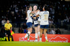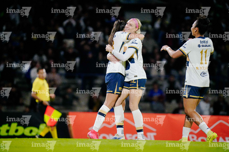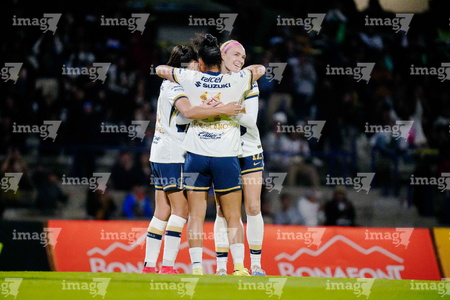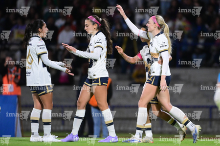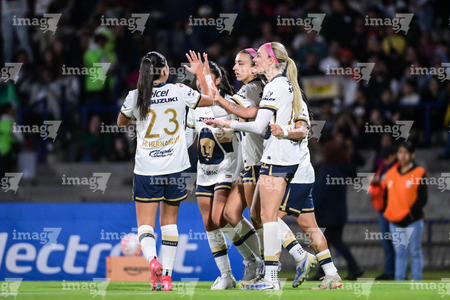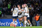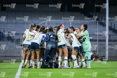 Ciudad de México, 16 de enero de 2026. Jugadoras de Pumas femenil, durante el partido correspondiente a la jornada 3 del torneo Clausura 2026 de la Liga BBVA MX Femenil, entre las Pumas de la UNAM y las Cañoneras del Mazatlán FC, realizado en el estadio Olímpico Universitario. Foto: Imago7/ Alexis Chavez