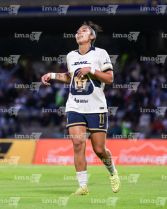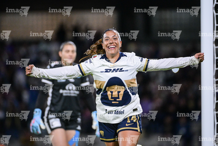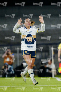 Ciudad de México, 16 de enero de 2026. Julissa Dávila en festejo de gol, durante el partido correspondiente a la jornada 3 del torneo Clausura 2026 de la Liga BBVA MX Femenil, entre las Pumas de la UNAM y las Cañoneras del Mazatlán FC, realizado en el estadio Olímpico Universitario. Foto: Imago7/ Alexis Chavez