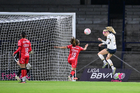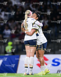 Ciudad de México, 16 de enero de 2026. Linda Hernández y Paola Chavero, durante el partido correspondiente a la jornada 3 del torneo Clausura 2026 de la Liga BBVA MX Femenil, entre las Pumas de la UNAM y las Cañoneras del Mazatlán FC, realizado en el estadio Olímpico Universitario. Foto: Imago7/ Alexis Chavez